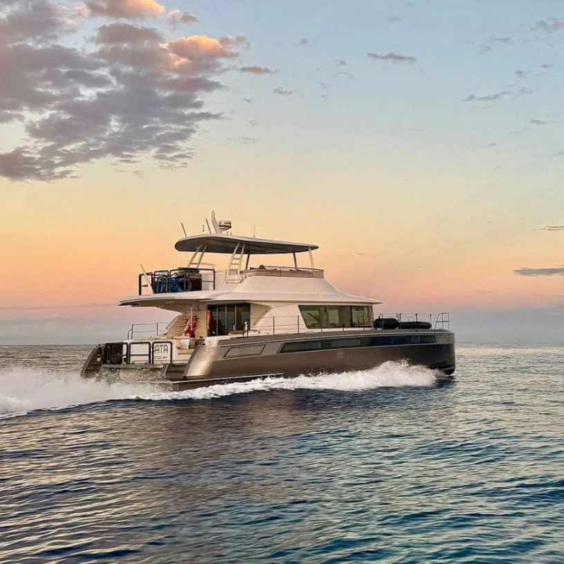 This floating paradise effortlessly marries high speed with pure indulgence, promising a cruising escapade like no other. Inside, four lavish queen berths await, each boasting private ensuite bathrooms, drenched in sunlight and ocean breezes, and cooled to perfection with custom air-con.